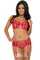 Niezwykle efektowny biustonosz Showgirl Tease me w stylu kabaretowym. Wykonany z czerwonej koronki na łososiowym podkładzie, ozdobiony satynowymi tasiemkami.