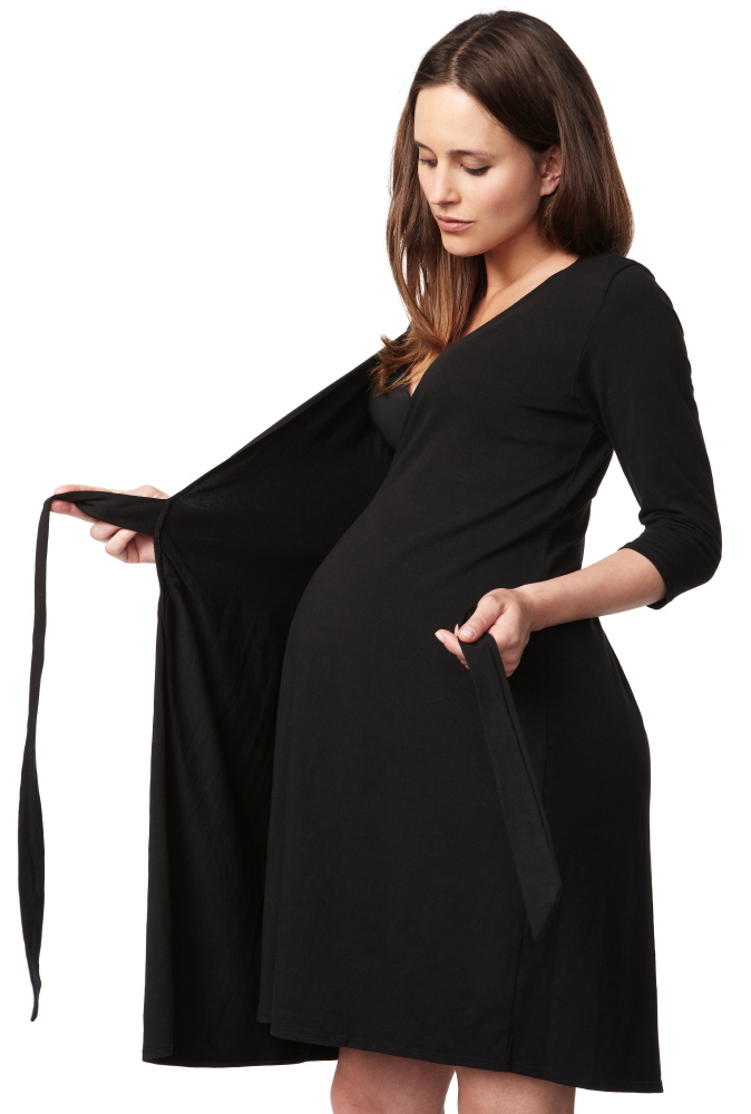 Fantastyczne rozwiązanie jako codzienna odzież domowa, oraz proste i eleganckie okrycie do użycia w szpitalu. Skrzyżowanie prostej sukienki z szlafrokiem zapewnia komfort i ładny wygląd. Ta sukienka może być wiązana ciaśniej bądź luźniej, w zależności od zmieniających się kształtów w trakcie ciąży, oraz po niej.